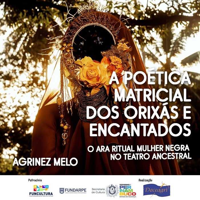 Agrinez Melo é a criadora e a facilitadora da oficina teatral “A Poética Matricial dos Orixás e Encantados”, sendo possível respirar uma vivência centrada na ancestralidade e no corpo. Os exercícios são centrados nos ensinamentos matriciais do corpo, que têm as energias dos Orixás e Encantados como elemento central. Recentemente, ela levou a formação à Mostra de Artes Cênicas do Banco do Nordeste Cultural, em Fortaleza/CE, realizada de 24 a 26 de março deste ano. Aconteceu no Centro Cultural Banco do Nordeste, na capital cearense.