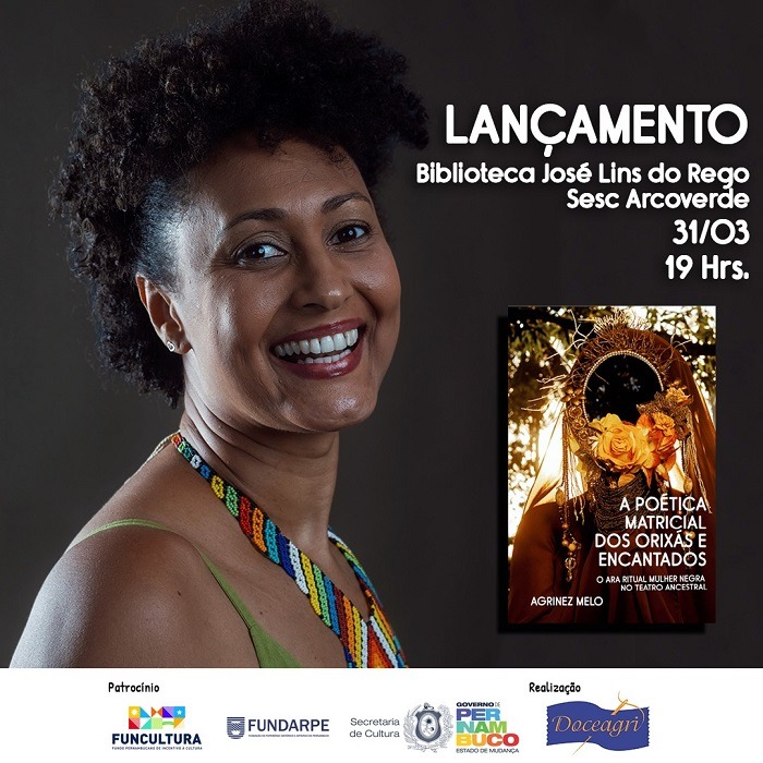 A partir da potência da mulher negra, dos saberes ancestrais e das matrizes espirituais que estão conectadas com o fazer teatral, revelando caminhos de criação, memória e presença, a pernambucana Agrinez Melo lança o livro “A Poética Matricial dos Orixás e Encantados: o Ara Ritual Mulher Negra no Teatro Ancestral”. Com classificação indicativa livre e ao mesmo tempo específica para o público adulto, pesquisadoras e pesquisadores das artes da cena, a obra tem como objetivo visibilizar a escrita da ancestralidade afrocentrada no universo do teatro e como consequência fortalecer a narrativa.