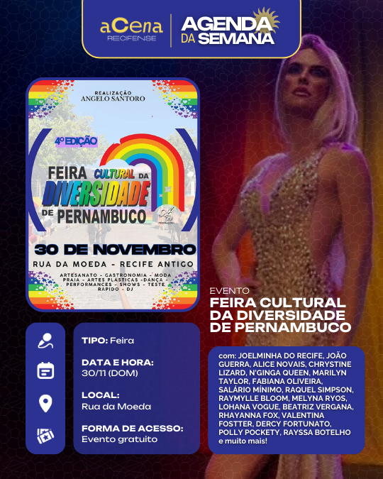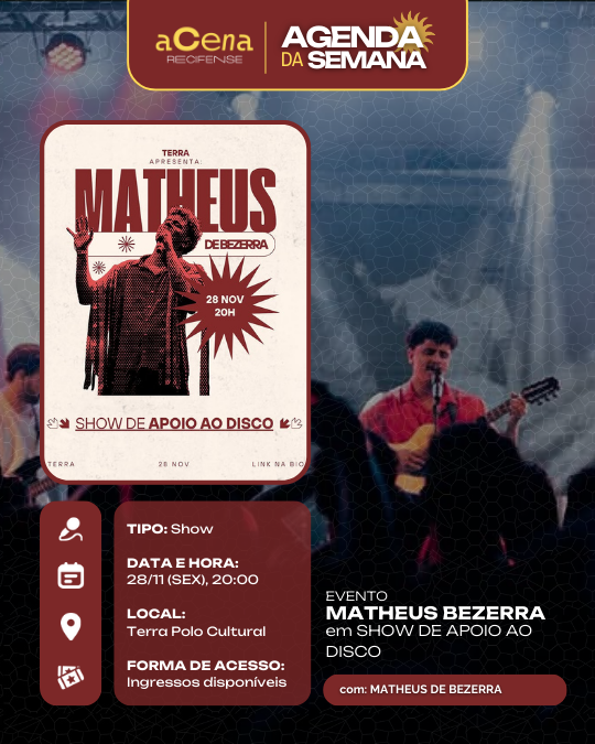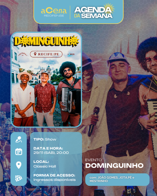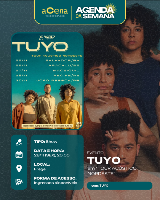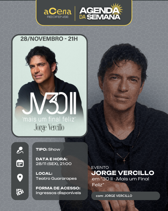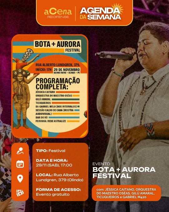 Semana perfeita para quem gosta de um bom show: Tem samba, rock, pop, funk, brega, rap, pagode, forró, música eletrônica, reggae, MPB, jazz, afoxé e muito mais tomando conta da RMR!