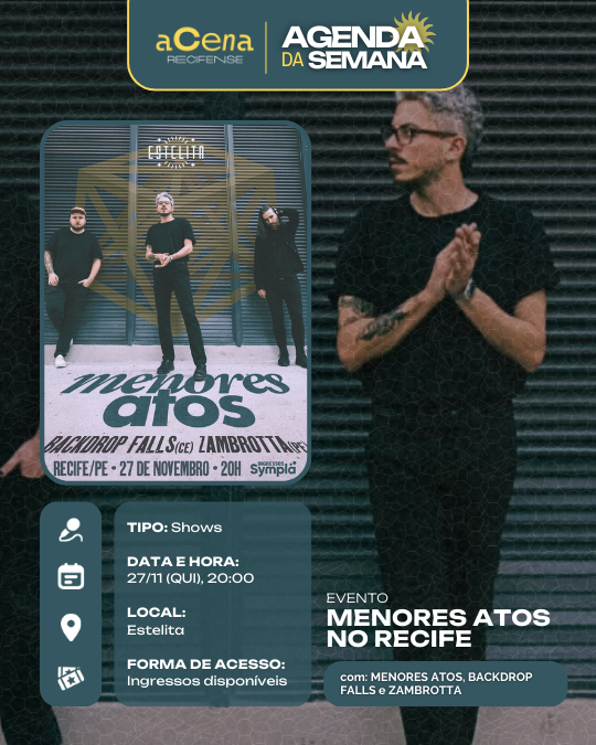 ⚠️ Lembrando que as agendas completas de quarta, quinta, sexta, sábado e domingo ficam disponíveis nos nossos stories nos respectivos dias. Então segue o aCena e ativa as notificações para ficar por dentro de tudo!