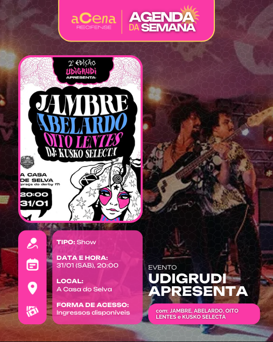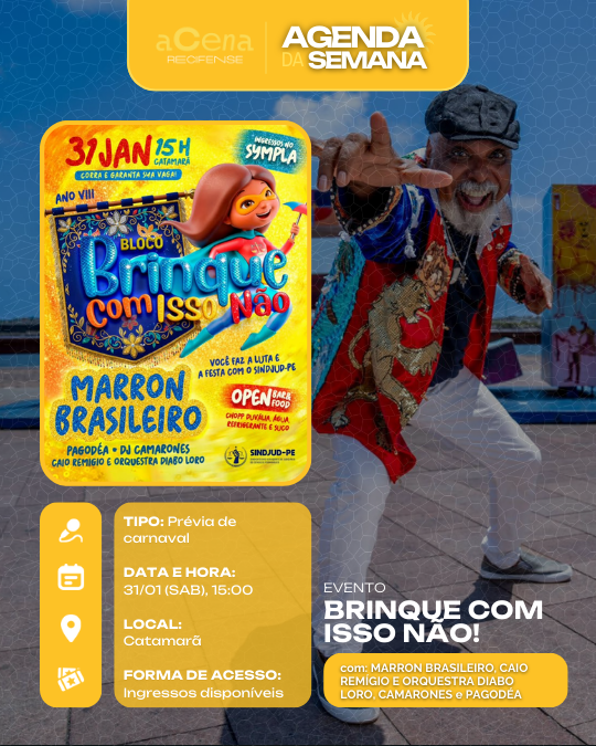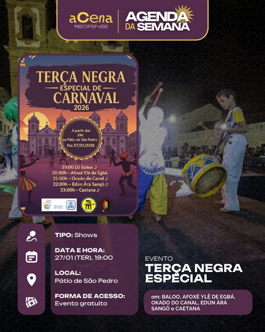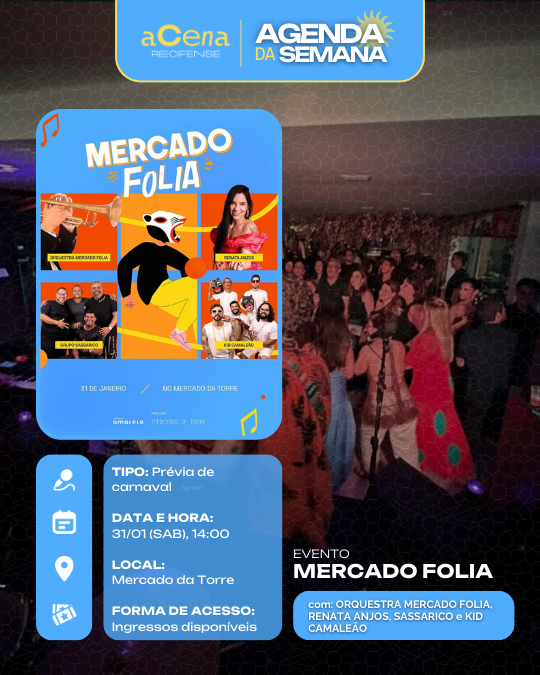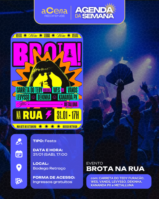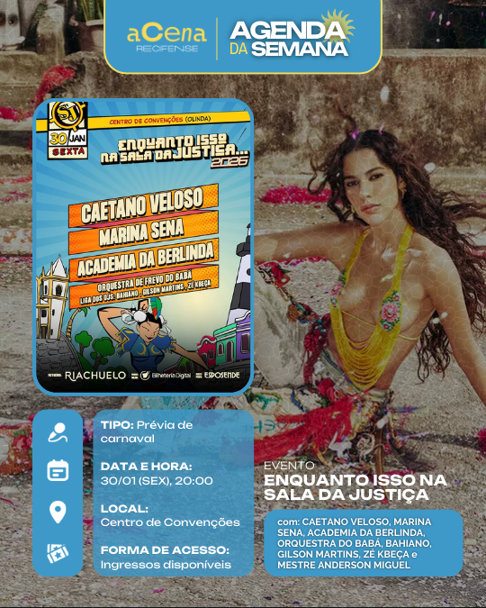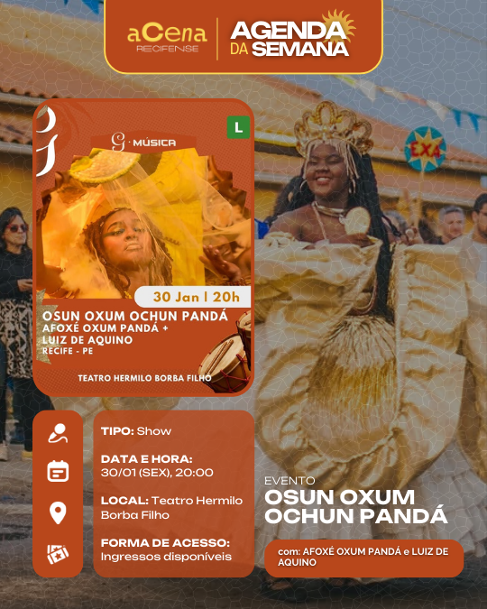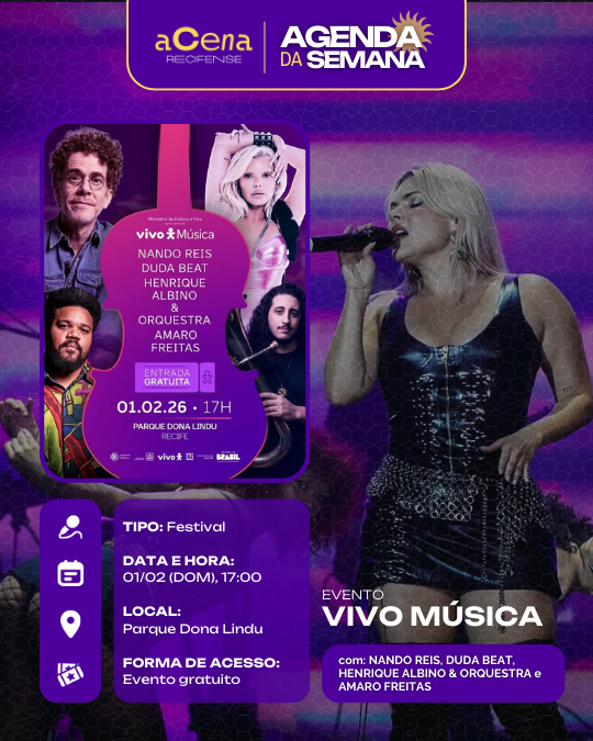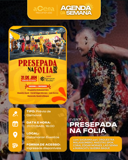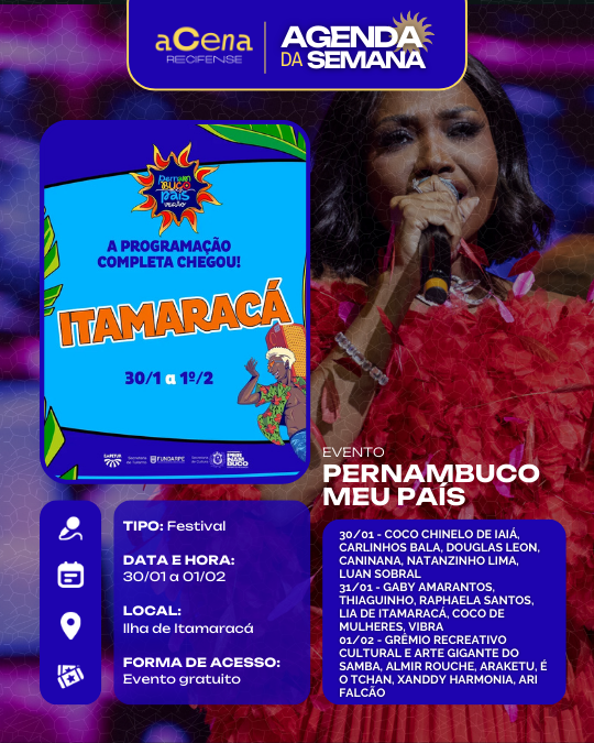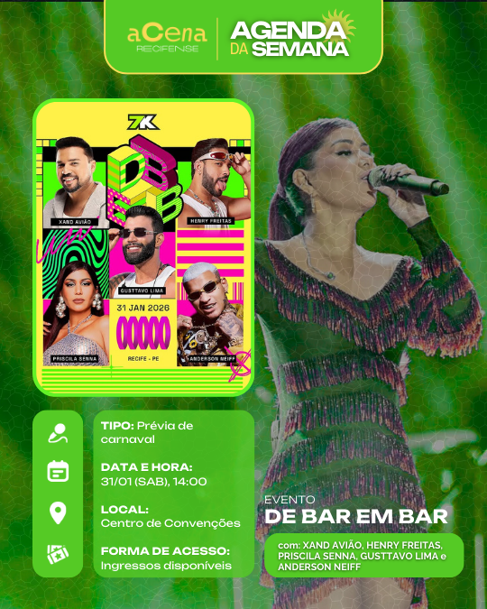 Atenção, atenção 📢: a agenda de eventos em destaque do aCena Recifense está passando na sua timeline com o melhor do que fazer na Região Metropolitana do Recife durante a semana!